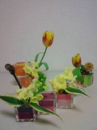 八丁堀教室より春のお花を使ったアレンジをご紹介しますチューリップにスイートピー 珍しい種類のガーベラを使ってのアレンジです。 このスイートピーの黄色は吸い上げをさせて色をつけているのですよ!TAKAEさんの作品です。まだまだ寒いけれど、もうじき訪れる春に、気持ちもわくわくしてきますプリザブドフラワーで作った人気のエンジェルアレンジ。 今日はブルーで作りました。 いつもありがとうございます。ブログ村に参加しています。プチッとお願いします