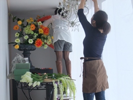 那須の「キャンドルハウスシュシュ」さんからウィンドウディスプレィのご依頼がありました。 ということで。。。本日は設営の様子をちょこっとだけご紹介します。高温になるウィンドウにはアーティシャルフラワーを使います。あっという間に日が暮れて。。そろそろ出来上がるころ。。今回のテーマは春のガーデニング。オレンジ色をメインカラーに春の心踊る様子を表現しています。ちょこっとだけご紹介。。ワイヤーで出来たぶたちゃん!NEO オレBOOさん・・・ いつもありがとうございます。ブログ村に参加しています。プチッとお願いします