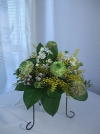 三連休、いかがお過ごしですか~? さて、神戸でのイベント後篇はマシコ先生からのお届けです!こんにちはーーマシコです初日 声がけに疲れたマシコはお得意のポップ作戦を開始しました。ホワイトデーにナイスショット贈った方の心にバーディショット妻の心にホールインワン枯れないお花で義理チョコかえし。オレBOOちゃんからは「ホントに関西人にうけるの。。?」と聞かれましたたが・・・これが結構、好評で・・・ 皆様のお力で素敵なイベントとなりました。お店番などお手伝いくださいましたオレンジブーケットメンバーの皆様ポートアイランドゴルフ倶楽部の皆様ありがとうございました。また、大澤専務さまには期間中お客様、サクラ、セールスと何役もこなして頂き本当に感謝です。ありがとうございました。 神戸出張の期間中、大阪の阪神百貨店で生け花の「未生流」の花展がありました。オレンジブーケットの講師である今井先生は未生流のお師範で花展に出展されていました。今井先生の作品は雲竜桜を使った格花。繊細で優しくて存在感のあるお花はまさに今井先生のようでした。ちなみにマシコも未生流の師範。今回はご無沙汰している親先生の作品にも会いました。このお花、うまく水の中で止まっています。以上、神戸便りでした。 いつもありがとうございます。ブログ村に参加しています。プチッとお願いします