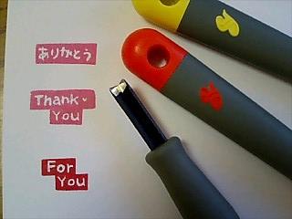 今日は娘の彫刻刀をこっそり借りて文字だけ彫ってみました。 娘の彫刻刀、切れ味抜群っ。さすが、安くはないだけのことはある。まだ新品だし。(2学期に斡旋注文があって そろそろ使い始める予定)以前100円で2本セットの彫刻刀で彫ってみたときは 切れ味悪くて深堀りしないとぜんぜんダメで、ちっとも役にたたなかったのに。う~ん・・・私用にもイイ彫刻刀 欲しいかも。 最近、めだかさん kabu☆chanさんがはんこケースを紹介されていました。A4クリアケースを使用されてましたね。持ち運びできるあたり いいな~と思いつつもわたしは今も3段ケース愛用してます。3段と2段を使っていたこともあったけど、またさらに増えたので 今は3段二つ。しかも、間に厚紙はさんで引き出し1段を二重にして使ってます。 でも、インクパッドはA4クリアケース使ってます(´▽`)今手持ちのファブリコがちょうどぴったり。 ところで、ずーっと気になっていたこと。みなさん 使った後のはんこは どんな風にキレイにしてるんでしょう?濡れティッシュでティッシュオフ?そんなのじゃ後で色が混ざっちゃいますよね。わたしはコレ。 100円屋さんで買った、なんだったっけ?切手を貼るときなんかに使う 水を含ませたスポンジを入れておくケース。あれの外側のケースを一回り大きいタッパーに変えたもの。これにたっっぷりと水を含ませておいて はんこをぶしゅぶしゅっと押し付けます。気持ちいいくらいきれいになります。こんなことやってるのはわたしだけかなぁ?**追加**ピンク色のが元のケース。これだと小さくて水がすぐ濁っちゃうんで 上の透明の方に入れ替えて使ってます。