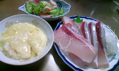 いつものお刺身と自然薯と酢の物です。あっさりしたメニューになっちゃいました♪