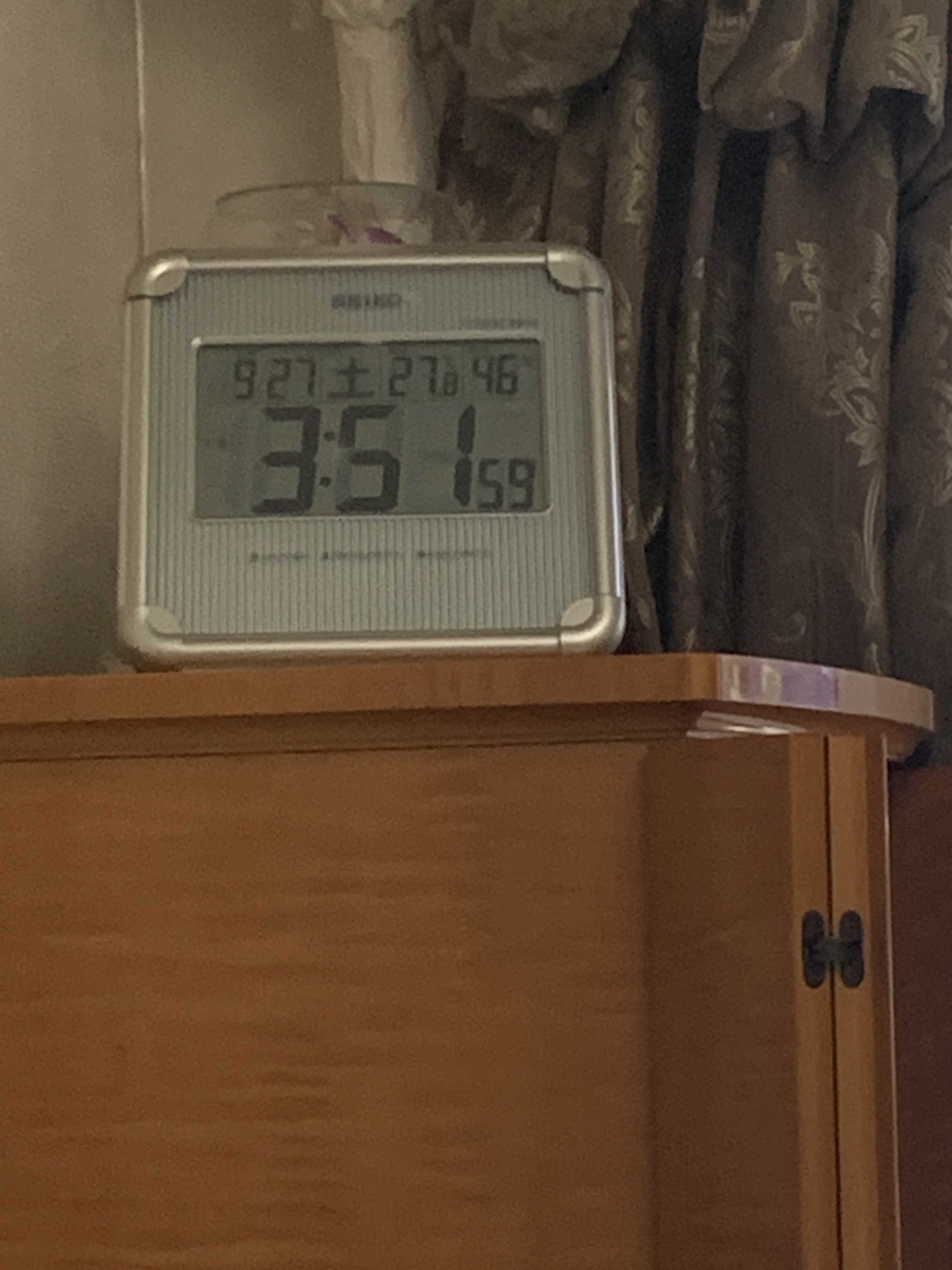 パソコンを使っている机に温度湿度計を置いています。 目的は、液体を電波で移動させている確認をするためです。室内のほぼ中央でパソコン使用で湿度も乾燥すると思われる場所の湿度が窓際においている湿度計の数値より10%から20%高いことを確認しています。 これだけでも、有り得ない現象だと分かりますが、今回はもっとはっきりわかる変化を確認しました。1時間ちょっとの間で湿度が59%から71%の間で上がったり下がったりを繰り返しました。 このような急激な変化でしかも上下することは自然現象では起こり得ないことです。 つまり、外部からの操作による変化であるとハッキリ分かります。 これにより、液体を移動させて私のいる周囲に溜めておき、それを私の目鼻口から口内に入れていることが推測できる証拠だと思います。