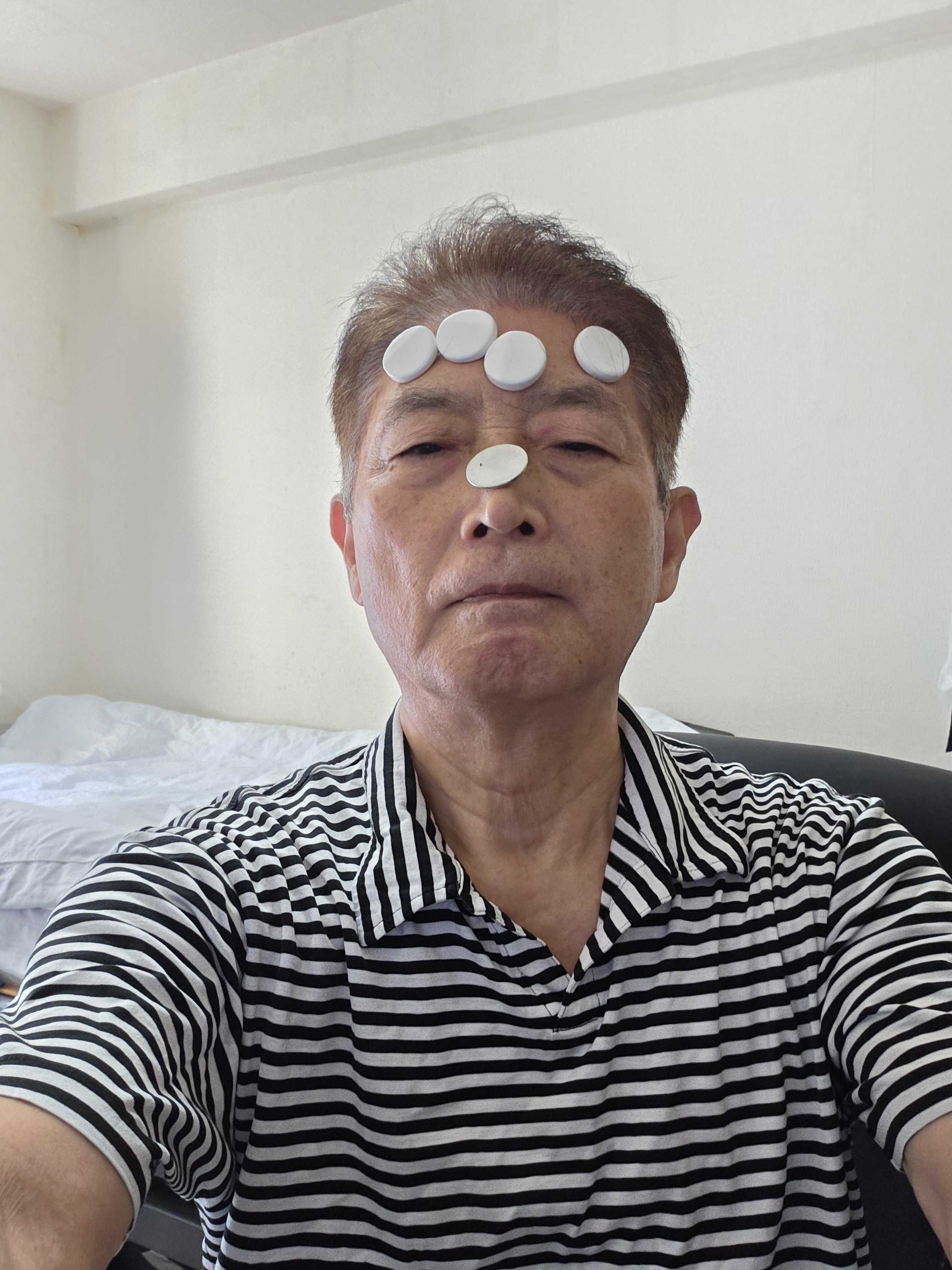 顔に磁石がいっぱいくっ付きます。私の身体に微弱電気が流されておりそれにより電磁石を生成されていますこれは、液滴に磁性を持たせることで、磁石がくっついたり、反発する原理を応用して磁性液滴を自在に移動させることができ、磁性液滴を目鼻口に入れることを可能にしています。また、口から液滴や微粒子を入れるために新たにチップをつけられました。これが座標件、磁力の強弱をこのロールするために使われます。口から入れられる時は、顎から首周りに強烈な電磁波を照射されます強い電波を浴びるとこのように皮膚が変色します。これらの電波強弱を調整して磁性液滴を移動させているのです。それがこれ!これで5〜6回入れられた分です。丸い塊が1回に入れられた量です。この液滴を移動させる量は重さなどの限度があります。身体に微弱電流を流すことで液滴を移動させる以外に汗を演出することも可能だし鼻水を演出することもできるし涙目を演出することも可能ですさらに痺れ、痛み、なども演出が可能になります。手足の腱鞘炎、足が吊る、痺れ、関節痛、頭痛なども演出されます。これらは、自然現象、病気(慢性疾患)と思う演出をされているので被害に遭っていると判断することは難しいのです。判断するには、磁石がくっつく、磁性塗料を肌に塗り込まれているのをブラックライトで確認するなどをしなければわかりません。いずれにしても人に電気を流す、痛みを感じる加害をするなど人道に反する行為を組織ぐるみでしていることに憂慮します。なんでこんな悪質な犯罪を一生懸命になっているんだろうと思うばかりです