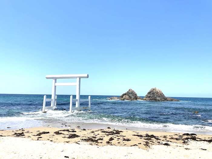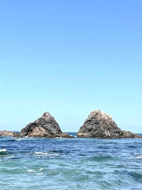 最初に到着したのは二見ヶ浦の夫婦岩とそのビーチ。