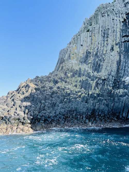 フェリーから見ると素晴らしい岩山の形が観れる。