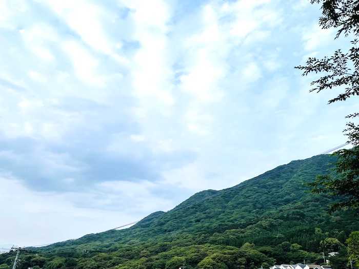 その木陰でもぐもぐ食べながら一緒に山の風景を眺めてた。