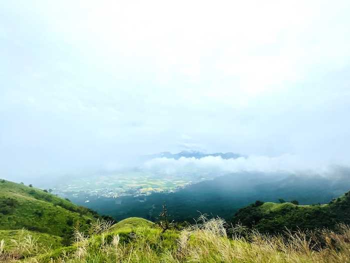 その車の道中で阿蘇の外輪山から阿蘇五岳の山を