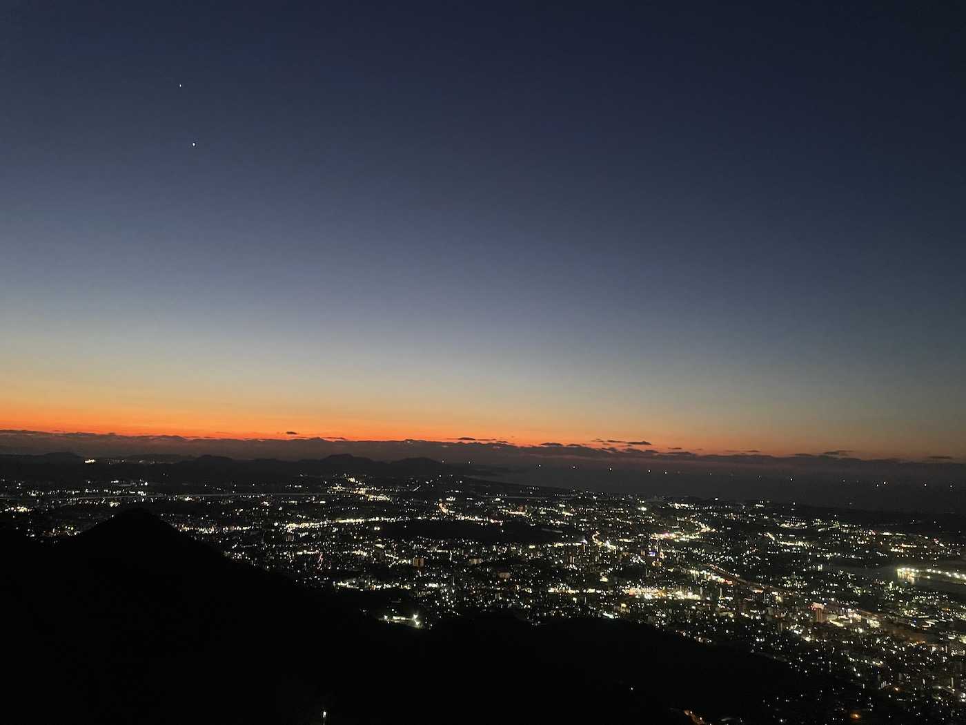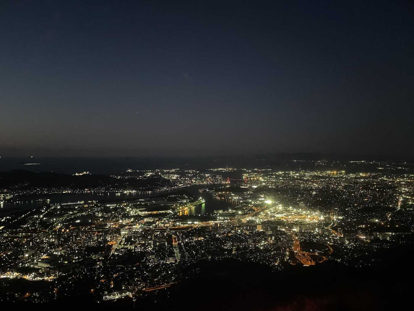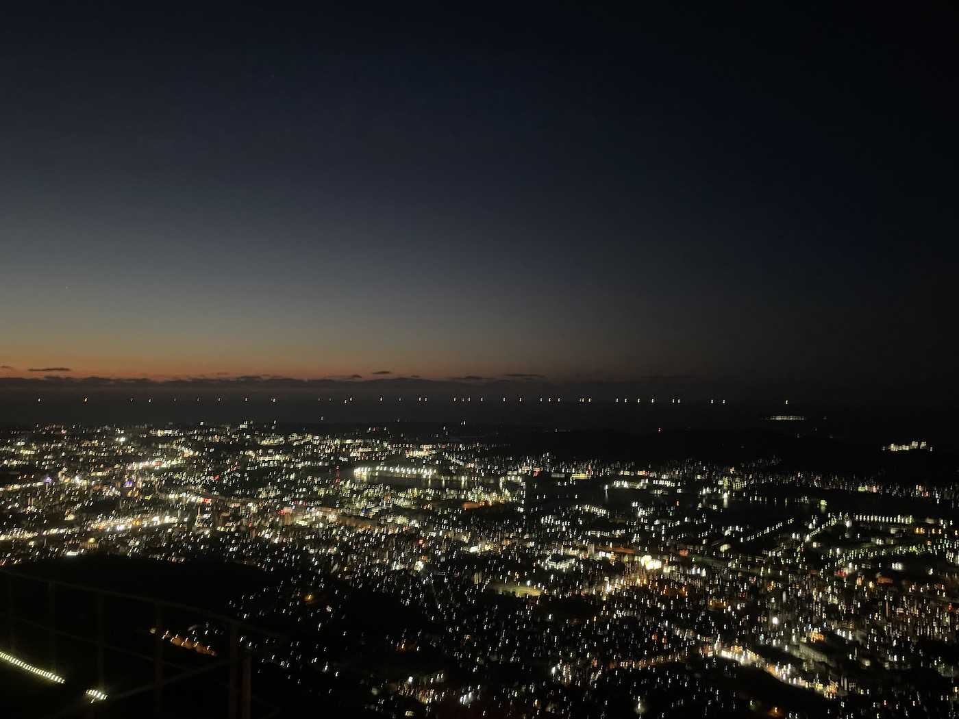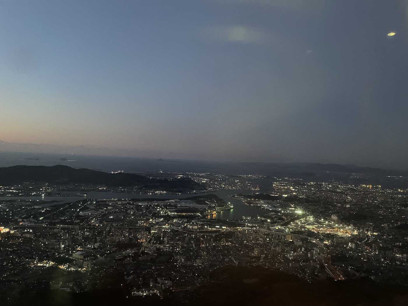 1億ドルの夜景と謳われる皿倉山の山頂にケーブルカーで登った。