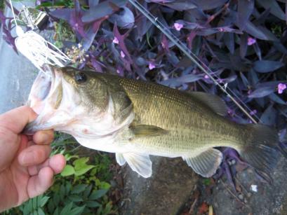 上流に移動。ホテイアオイのくぼみで、バズに40cm。