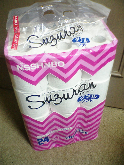 これ、実は地元のホームセンターで売られていました。24ロール(24個)ダブルのトイレットペーパー。 498円 1個20.75円 安いでしょ?。けち臭そうですが、これでトイレ掃除に使います。トイレ掃除は雑巾よりトイレットペーパーで掃除して流してしまうほうが衛生的だからです。でもトイレットペーパーで掃除したら、細かいチリやゴミが出るよね?。。だからその細かいチリやゴミを下記でふき取り掃き取り完了するわけです。http://plaza.rakuten.co.jp/osusumesyouhin55/diary/200801160001/スーパーだと販売面積と在庫リスクから24ロールはないですが、ホームセンターだと置かれている事があります。皆さんもよければご参考までに。