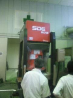 中小企業センターにバンドソーを借りに行ったところ、先日の日記で話したサーボプレスが搬入されてました。新品のピカピカで、キズ一つ無い(当たり前か!)今まで60トンプレス機があった、この奥の部屋に収まります。センターの先生方、とくにプレス加工担当の方々は終始ニコニコして談笑してました。やっぱり嬉しいんでしょう。「自分のトコに(サーボプレスが)入ったようで嬉しい」と話すと「自分のモノのように使ってくださいよ」と有難いお言葉。「あれもしたい、これもしたい」と夢が大きく膨らみます。