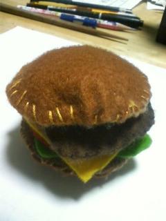 ペプシマンのブログに次女の家の模型が載っていて驚いたんですがうちでは町工場という環境上チビどもはモノゴコロついたときから「作る」ことに全く抵抗なく育ちました。これは三女(小学2年)が作ったハンバーグです。フェルトを縫って、中に綿を詰めたりして作りました。こういうのを毎日毎日、暇があると作ってます。友達へのプレゼントは基本的に作ります。長女は低学年の時に、友達に誕生日プレゼントで手さげかばんを作り贈りました。その友達、大変喜んで、同時にすごく驚いていたそうです。欲しいゲームがあっても機構が分かるもの(沈没ゲームとか、電子ブロック)しか買いません。それでもニンテンドーDSとか、流行のものが欲しいと言い出したときはパソコンの操作方法、ローマ字入力を教え、パソコンゲームをやらせながら同時にエクセルなどで表計算のバイトをしろ!と言います。親が偏屈で、変わり者かもしれませんし、そういう親の許に生まれたのは諦めてもらいたい。しかし、「芸は身を助ける」。私の子供時代であれば当たり前に出来たことが、今の子供は出来なかったりするのが、日本の将来として不安です。経営者、とくにすみだ塾の諸兄にはせめて自分が従事している仕事くらい子供が出来るように教え込んで欲しい、と常に思ってます。