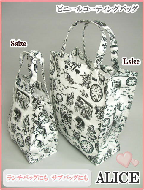 【Sサイズ】アリスシリーズ コーティングコットン トートバッグ マチありタイプ 不思議の国のアリス 薔薇雑貨のおしゃれ姫 お手頃価格でギフトにも!