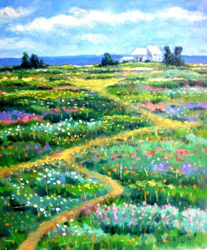 絵は何年たっても日記以上に当時の思い出をよみがえらせる。2月に房総半島の千倉に行った。もうすでに野は花で埋め尽くされていた。アムステルダムは寒い季節だったが運河の船は色とりどりと美しかった。草原が好きな僕は、全国の草原の山のほとんどを登った。いつもこんな風にルンルン気分で至福の草原を駆け巡った。6月生まれのせいか、花では紫陽花が無性に好きである。紫陽花や小雨の庭のうすあかり好きな久保田万太郎の次の句からふと浮かんだ句である。湯豆腐や命の果てのうすあかり