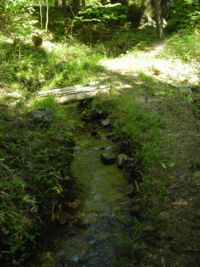 ご無沙汰してすみません。森になかなか行けなくて。久々に行ったら水路にかけた丸太の橋がすっかりなくなっていた。写真(流される前)の橋です。いつぞやの大雨で流されたのでしょう。この水路で丸太が流れる水量って・・・。