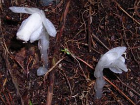 決して珍しい植物ではなく山林で普通に見られるらしいのですが、実際見るとびっくりします。ここでは5cm以下の小さいものでしたが、最大15cmといわれ茎に鱗状の葉がたくさんついて竜のようです。他には幽霊草、水晶蘭などの別名があります。