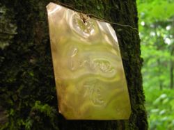 厚さが0.2、3mmくらいなら普通の工作用のはさみで切れます。穴あけはドリルです。先が太めのボールペンで、凹ますように文字や模様を書きました。いまはピカピカですが、だんだん黒ずんでくると思います。細い樹木やワイルドストロベリー用に作った小さなタグは、つけるととてもかわいいです。色が変化したらお知らせします。