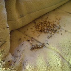 中にあるものをまず干して・・・と毛布を動かそうとしたら、縞模様の種が足元にパラパラ・・・て。