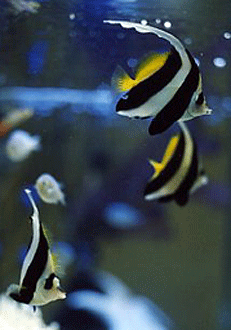 スズメダイの仲間を2種類6っぴきが水槽の中へかわいらしくデビュウした。 先輩達も少しは遊ぶかのように追っかけこし始めた。 飯田周辺では、海水魚はあまり売られていない。神奈川から引っ越してきて3年、その前から魚はそのままで、皆長生きをしてくれていた。アルプス山脈に囲まれているこの地域の水は、みな長生きさせてくれる。神奈川では、3ヶ月から半年位で入れ替わっていたが、ここの水を使ってからは4年過ぎても皆元気だった。新しい仲間達よ長生きしてくれよ! また色々な、仲間を少しずつ探して増やし、にぎやかにしたい。この五色えびも、脱皮に失敗してしまった。えびも楽しくさせてくれるから、仲間をさがそう・・・