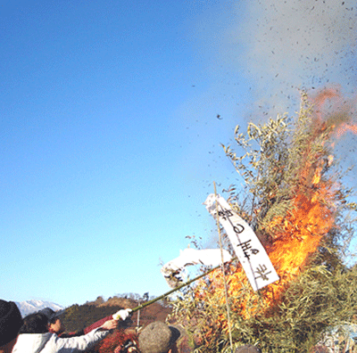 朝8時からどんど焼きを厳寒の田んぼの後地での行事である今年初顔合わせ。御とそをまあいっぱい。・・・茶碗酒で。こんがりと焼きすぎのおもちを食べると無病・・・縁起物。 一せいに焼きだす。この後新年会が・・・終わりの時間を決めてない新年会が昼から始められた。さあ今年も、お隣組みのお付き合いの始まりだ!!!