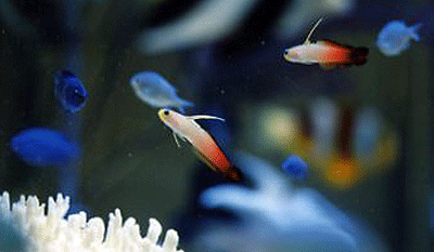 蛍光色を塗りたくっているみたいなのがコバルト。長いヒレをなびかせているのが”ハタタテハゼ”なんとなく美人に見えそうなので、やはりこの中では主役になってしまう。でも色々と周りを引き立てて、華やかにしてくれる一匹でいても絵になる器用な、可愛い子です。ブルーの海水のなかで、輝くブルーを発して海底を泳ぎまわっているが、生涯、10メートル以内を縄張りとして決めると、そこから出る事は無い、欲の無い子です。岩のあいまや、転がっている貝殻のなかを我が家と決めると近ずく物は、全て敵!命がけで攻撃してきます。海のなか全体から見ると、謙虚に感じるが人権ならぬ魚権を、主張して生きている。じゃまな物があると口にくわえなるべく離れたところへ捨てに来る姿がなんとも可愛い!私も、必死に抵抗して生きてきたが 周りの方々からは、謙虚に見てもらえてるかな・・・