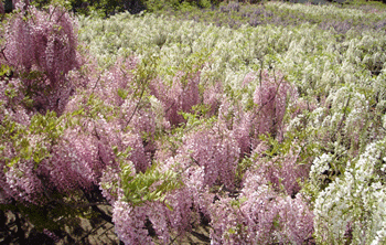 いよいよ花も最高調!!!まずは終盤にさしかかった阿島の大藤のはな 上からの風景入り口 藤の花のかおりにさそわれて・・・園内に入ると、かおりにむせぶ・・・ドームを仰げば・・・ピンク、白、紫と 花びらがせまる・・・なごりを惜しむかのように房を振って。 バイバイ・・・喬木の村花・・・九輪草が咲き始めた。九輪草祭りで大賑わい・・・本番の始まり!!!朝から観光バスがいっぱい 花から花へと蝶々のごとく香りをおっかけっこ。