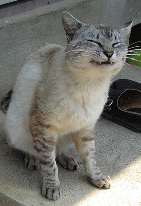 毎日3回以上顔を出す隣の猫、”しょうた”この一ヶ月ほど顔を見せなかったが朝、前足を引きずりながらやってきた。久しぶりなので思わず愛情をそそいでしまった。一ヶ月前は、ふっくら冬支度の体をしていたのにやせ細って、びっこ引きながらの訪問にビックリさせられた。メスをめぐっての戦いを終えての事だろうが・・・ 夏の頃は、たしか目のへんを引っかかれて 白目がただれていた。本能とはいえ、負傷してるのを見ると同情するが自分自身は、達成したのか、逃げて来たのか 幸せなのかな???ところで私、検査入院で10日ほど飯田市立病院にお世話になる事になりブログもお休みさせて頂きます。退院したら又よろしくお願いします。