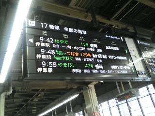 今日は、朝から仕事で大宮から新幹線に乗り、日帰り盛岡出張へ。東京(埼玉)は、良い天気で、富士山もよく見えたが、『はやて』の車窓が徐々に東北へ向かっている事がわかる景色に・・・。仙台を過ぎたあたりから、一面雪景色に~。盛岡に近づくにつれ、山々にはスキー場が見えてくる。写真には見えないですが、苗場級のスキー場が見えた。ここまで来て、見るだけとは・・・(苦)(;。;)仕事なので、きっちりやることやって、週末にまとめて楽しむかっ!家を8時に出て、大宮に9時10分位には到着。9時42分大宮発-盛岡には、11時59分着。4時間の旅。改札で、営業君と合流し、駅側の居酒屋でランチ。焼き魚と豚汁定食750円なり。 あっご飯は大盛りねっ! 新米で旨かった~。夕方まできっちり仕事をこなし、仕事完了。そして帰路へ。本当は『じゃじゃ麺』を食べたかったが、時間が無かったので、次回に持ち越し。帰りは駅弁で我慢。『銀河鉄道の夜』駅弁。一番搾りと一緒に。あっという間の日帰り出張だった。たまにはこういう仕事も楽しいものだ。あくまでも、『たまには』に限るがね。ちなみに、今回は、体がバキバキに痛い。(昨日のスノボが元凶)