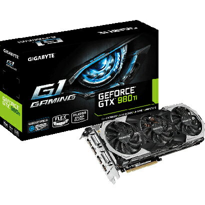 グラフィックカード「GIGABYTE NVIDIA GEFORCE GTX 980Ti」 コアクロック1000MHz/ブーストクロック1076MHz製造/販売ギガバイト製品情報グラフィックカード「GIGABYTE NVIDIA GEFORCE GTX 980Ti」価格比較ここをクリック 補助電源は 6 ピン×1、8 ピン×1。映像出力として Displayport×3 と HDMI×1、デュアルリンク DVI×1 を装備する。