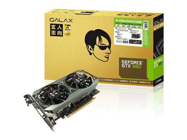 グラフィックスカード「GF-GTX960-E4GB/OC2/SHORT」 短寸基板ながらGeForce GTX 960と4Gバイトメモリ搭載製造/販売玄人志向製品情報グラフィックスカード「GF-GTX960-E4GB/OC2/SHORT」価格比較ここをクリック GPU として GeForce GTX 960 を搭載した PCI Express x16 接続対応のグラフィックスカードで、メモリとして 128 ビット GDDR5 4G バイトを標準搭載した。またショート基板を採用した省スペース設計となっているのも特徴だ。動作周波数はベースコア 1190MHz(ブースト 1253MHz)/メモリ 7010MHz。補助電源は 6 ピン×1 を利用する。映像出力は DVI×1、HDMI×1、DisplayPort×3 を備えた。
