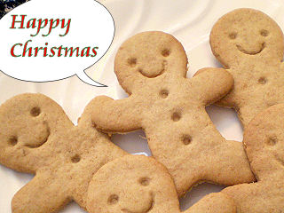 (いつの間にやら) 外に出てみたらサンタさんを発見!キラキラに見とれているのかな?