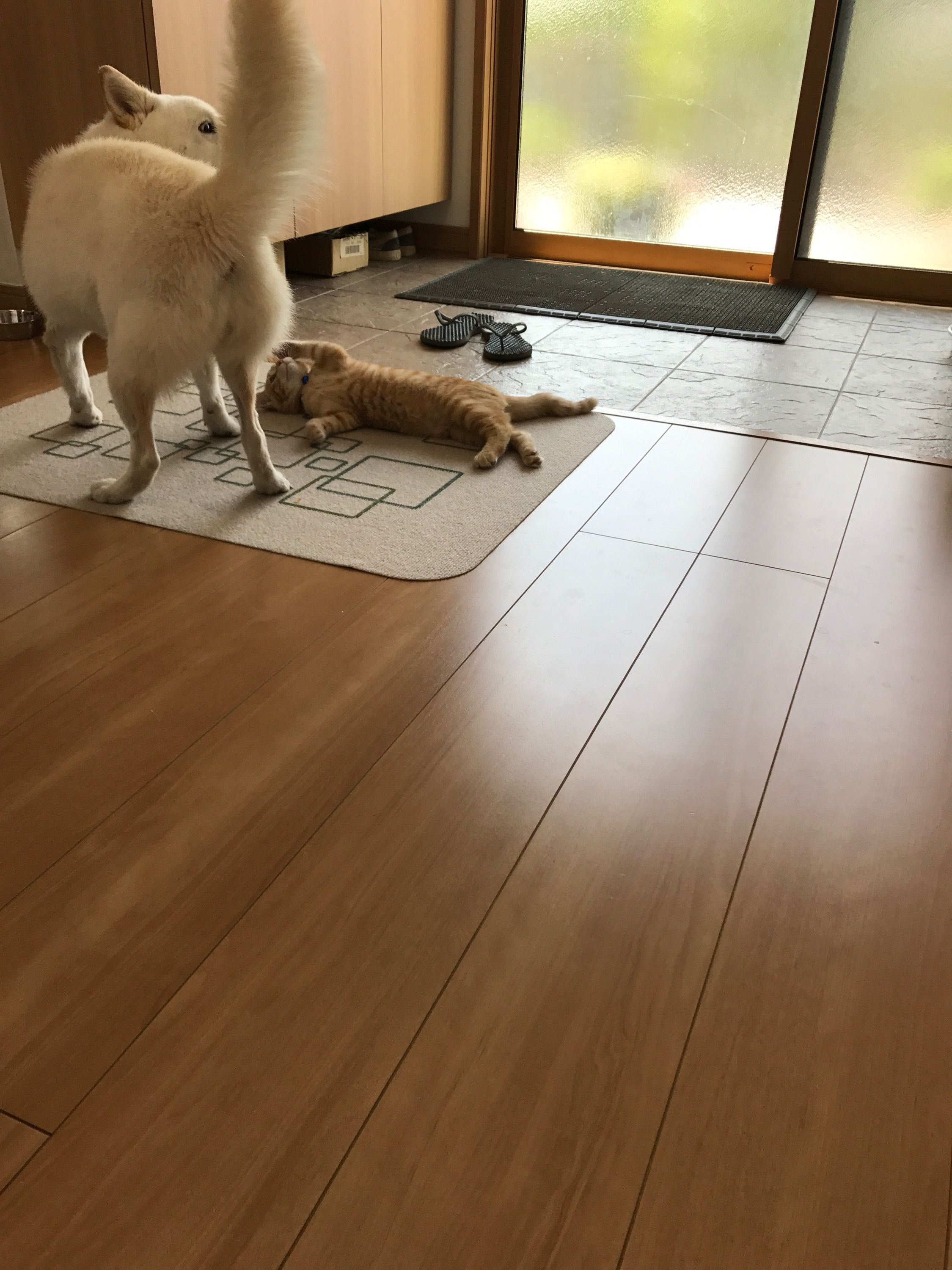 麦ちゃん(右)はおしっこを時々