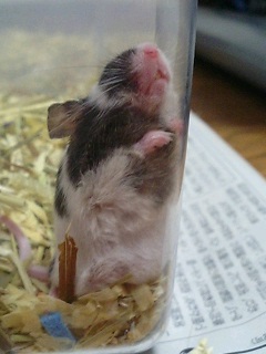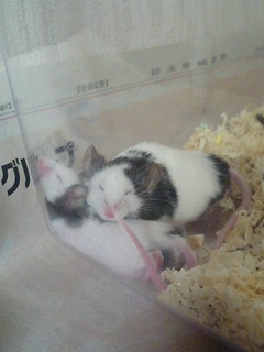 結構、大きくなって来たチビコイ大きくなって来たのに、よく鳴くなぁと思って覗いてみると。。。。。ギョエーい。。。いや。。。無事産まれてくれてるのは嬉しいんだけどまさか。。。ホントに妊娠してたとは。。。ホンマ、家のパンダマウス増え過ぎかも増え過ぎちゃうと、一とのコミュニケーション取れないから暫くは、繁殖控えなきゃね
