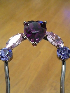 ご紹介が遅くなりました。。。。。m(´;ω;` m)が★かんたま★様の所から来てくれたハニーたんです写真で見るより、実物の方が美人さんでビックリで~すハートも紫だからか、甘く無く良い塩梅ですデザインも、足も良い具合なのでお団子にして、サクサク挿してます同封して下さったお風呂セットも、楽しんでます遅くなりましたが★かんたま★様、ステキな交換をありがとうございました私の中では、ちょっとした発見だったんですがハートの留め具もハート型だったのにはねいる屋さんのこだわり(?)を感じました