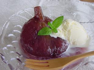 きれいな赤ワインの紫色に染まったいちじくは濃厚なバニラアイスとぴったりです。