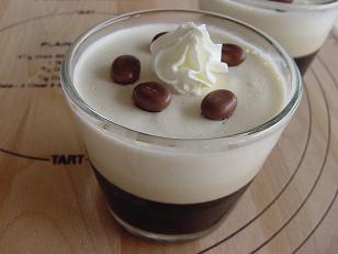 ゆるゆるのやわらかい コーヒーゼリー を固めた上に、 7分立て生クリーム コーヒーと牛乳 を混ぜてゼラチンでクリーミーでやわらか コーヒームース を流し込み2層にしてあります。