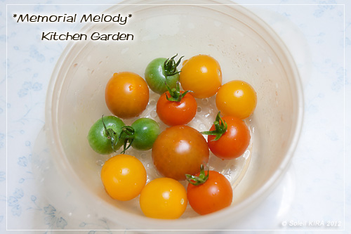 6月23日 曇ときどき晴れ今日の朝、エアポンプ動かしたら音がおかしいな~と、発泡スチロールの中を見ると、完全に培養液がなくなってるし。ミニトマトは大きくなったこともありかなり水を吸うようです。4リットルの培養液をドクドク入れてやったよ!ついでに、水耕栽培のピーマンも台風で雨水がたっぷり入り込んでしまったので、ポンプですべて吸い出し培養液注入!ミニトマト、収穫して食べてみた!青いのは台風で落ちちゃったもの。食べられませんよ。黄色いミニトマトのイエローミミは超~~~~~~~甘かった。完全にフルーツだね。台風で散々な目にあいましたが、また色づいて収獲できるのが楽しみ。【 【楽天市場】和菓子 】 1.宇治抹茶スイーツひんやりセット2.最適な葛餅セット6個入3.くず餅入甘味セット4.宇治抹茶葛きり 柚子しずく 3個入5.日本三大菓子処「松江」 涼菓十二撰「出雲国の宝石」【楽天市場】お中元特集2012和菓子 老舗和菓子本舗[麻布青野]の夏ギフト限定癒しの上生菓子[金魚]夏を涼しげに彩る上生菓子!金魚がすだれ竹箱に入って送料無料3,500円オーガニックサイバーストア 夏の涼味!7種のところてん・あんみつ詰め合わせ創業明治32年老舗が作る西伊豆天草100%心太桜井蒟蒻店《 2012/6/22 |記事一覧|2012/6/24 》■家庭菜園 - ベランダで野菜栽培できるかな