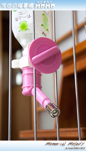 6月17日 曇りのち晴れケージにエコボトルトップを設置!飲みくちのボールをペロペロすると、お水が出る仕組み。これでいつでもキレイなお水が飲めるよ。器にお水を入れておくとどうしてもホコリが入ったりで汚れるんですよね。ももちゃんは、ケージの中で過ごすのは夜に寝るときだけですが、たまに、ケージの中で人形をくわえて遊んでいる時もあるようで、そんな時は、水を中に置いておくとこぼしてしまったりしますので、これならその心配もありません。もともと蛇口をペロペロしたりもしていたので、こういう方が好きなのかな?土日は姪っ子が遊びに来ていたので、ももちゃん、散々振り回されお疲れ気味。姪っ子が帰った後はこんな姿でした(笑)好きなだけ寝てくれ。。。ランキングに参加してますポチッと応援してくれると、とってもうれしいです!↓にほんブログ村 写真ブログ人気の写真ブログもチェック!写真共有サイト「フォト蔵」◆猫用品・猫グッズマルカン 【限定特価】エコボトルトップ・ピンク [MR-158]飲料水などの市販のペットボトルを再利用し、ウォーターボトルとして使用できます。いつも新しいボトルが使えるので清潔です。対象動物:小動物・犬・猫特価 428円 (税込 449 円) 送料別口コミ・感想・評価SHOP:ペット健康便★TV雑誌で人気★プレミアムを超えた宝石の様なアイス!豪華GIFT 北海道ミルクと天然素材を贅沢に♪独自の製法で驚くほど滑らかな口溶けシャ・ペルル【送料無料】ハーゲンダッツ&苺アイス★人気種類を厳選詰合せ!お中元は人気のハーゲンダッツと苺のアイスをセットでお届けします♪三ツ星や 楽天市場店『サライ』『情熱大陸』で話題!自然放牧ジェラート 濃厚なのにすっきり♪完全自然放牧&完全無添加アイス山陰とれたて本舗お中元特集2012 アイスクリーム・乳製品《 2012/6/16 |記事一覧|2012/6/18 》■今日の猫事情