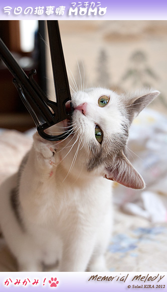 7月26日 晴れ 久々に今日は動画だにゃん!ごろんごろん、転がりまくり。発情期に入ったらしくとにっかく落ち着きがない。ごろごろ、ごろんごろん、寝転がり猫。お腹を出してすごい格好だこと(笑)*東京も35度超の猛暑日!*こんな日は、大抵玄関のタイルの上で寝ることが多い。冷たいのだろうが、午後からは西日で暑くなると思うんだよね。ケージの中のほうが絶対に涼しいよって、結局中に入れてあげるわけだが。。。*脱走!*今日の朝は、ベランダでガタン!ともの音がして起きた!また野良猫が来ているなと思い、外を見ると見覚えのある白い猫。あれ~~~~~、ももちゃん、ベランダに出てるわーーー!すぐに、窓を開けたら自分から部屋に入ってきた。なぜか、網戸が少し開いてた。自分では開けられないはずなのですが・・・?最近、外へ出たがるので気を付けないと。ランキングに参加してますポチッと応援してくれると、とってもうれしいです!↓にほんブログ村 写真ブログ人気の写真ブログもチェック!写真共有サイト「フォト蔵」◆猫用品・猫グッズ【セール】 モンプチ クリスピーキッス シーフードセレクト 30g本当においしいものを少しだけ。モンプチ初のおやつ新登場。3g×10袋の使い勝手のよさ。よく噛んで歯の健康も。価格 158円 (税込) 送料別口コミ・感想・評価SHOP:猫ちゃんのための専門店「快適ねこ生活」MODKAT(モドキャット) トイレBOX 珍しい上から出入りタイプ!トイレをオシャレに演出。LEOMIネコのトイレハーフカバーNA-400N ハーフカバータイプのスノコ付き猫トイレです。e-net shop Pet館散らかりにくいネコトイレCNT-500 長いスノコを歩いてから外へ出る構造の、砂が散らかりにくくなっています。キャットランドトイレ用品ランキング《 2012/7/25 |記事一覧|2012/7/27 》■今日の猫事情