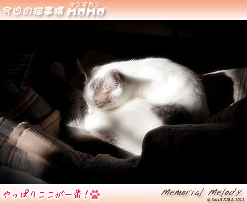 9月24日 晴れ*ベビーラックで毛づくろい中!*ちょうど朝日が差し込み、なんか気持ちよさそう。今まで、2階の部屋はものすごい暑さで、いくらお気に入りとはいえ寝ていられるような状況ではありませんでしたが、涼しくなってくるとここが居心地がいいのか、やっぱりベビーラックで寝るのね。プルメアS(ペールオレンジ) コンビ Combi ベビーラック・ローベッド&チェア*いたずら、ここ掘れにゃんにゃん!*最近、朝早くに私の部屋のドアをガリガリ、開けろ~って、うるさいんです。仕方ないからドアを開けるのですが、部屋に入ってくるとあっちへうろうろ、こっちへうろうろ・・・でも、眠いから寝てると・・・変な音が?えっ!?コーヒーの木が植わってる鉢をいたずらされたー!土をかっぱくなよ!散らかされた。ランキングに参加してますポチッと応援してくれると、とってもうれしいニャン!↓にほんブログ村 (猫ブログ)猫のいる暮らしクリックするだけで投票できます。投票後はランキングページに移動されます。写真共有サイト「フォト蔵」アニマルデザインオイルウォーマー キャット 満面の笑みを浮かべたネコちゃんのアロマポット。陶器の香立て・アニマルコレクション トロイメライ香立て(子猫)【お香ライフが楽しくなる】子猫の香立て猫のミミ「mimi」電気式ミニアロマライトコンセント型-予備パネル球5wおまけ付ネコ香立て (香皿)せとものの街から、温かみのある香立て 楽天市場でアロマ・癒しを探す アロマ・癒し 売れ筋人気ランキング《 2012/9/23 |記事一覧|2012/9/25 》■今日の猫事情