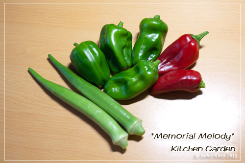 9月26日 晴れ相変わらず家庭菜園はこんな感じ。毎日丸オクラが採れて、ピーマンはときどき収獲!そろそろオクラも終わりですかね?最近、オクラに虫がついて葉を食われました。まったくけしからん!角オクラは収獲を忘れると筋だらけで硬くなってしまいますが、丸オクラは、ある程度大きくなってもやわらかいので、15cm前後まで成長させ大きくなったところで収獲!食べるとやわらかく、ほんのりとした甘味があり美味しいです。オクラは大抵、毎朝収獲したら納豆とお味噌汁に入れて頂きます。やっぱりあの歯ごたえがいいですよね。他には、すき家の花がつオクラ牛丼も真似てみました。さっぱりしているし歯ごたえいいし、見た目も食欲そそりますから、オススメ!すき家は期間限定メニューでもう終わっちゃったみたいですね。ピーマンは最初のときより小ぶりですがたくさん収獲できます。オクラのように急いで収獲することもないと、適当に食べられるだけ収獲!なかには赤く色が変わってるものもありますが、これはこれで色合いがいいのでもちろんおいしく頂きます。最近は、姪っ子が来た時にピーマンの肉詰めを沢山つくりました!姪っ子もお手伝いしていたようで、自分で作ったピーマンの肉詰めは特に美味しかったのかな?きれいに完食!肉厚なこどもピーマンも収穫できたので、そちらも美味しかったようです。最近、テレビでも「ピー太郎」で苦みの少ないピーマンとして紹介されてましたが、あれってこどもピーマンのことなんですね。やわらかく、おいしい丸莢オクラ★送料70円郵便OK★送料70円郵便OK★みどり丸ノ助やわらか丸オクラ 【サカタのタネ】春まき野菜種12ml価格 189円 (税込) 送料別 【楽天市場】野菜のタネを探す! 【楽天市場】苗物(野菜)を探す!《ピーマンの肉詰めレシピ》・楽天レシピ・クックパッド・キユーピー3分クッキングハイポニカ1L液体肥料 お得!ホームハイポニカ液肥1リットル/1000ml 水耕栽培用ですが、土栽培でも使用可能。HB-101 100cc 天然活力剤 HB101 あらゆる植物の栽培に威力を発揮する、万能の活力・活性液です。万田酵素アミノアルファ 500ml 植物の光合成を活発にし、植物本来の生命力を引き出す植物活性剤です。ペンタガーデン PRO 350ml ALAの働きで、日陰や寒さでもすくすく育ちます。花壇・プランター・観葉植物・家庭菜園などさまざまなシーンで 楽天市場で肥料を探す ◎こちらの肥料売れてます! 売れ筋人気ランキング《 2012/9/25 |記事一覧|2012/9/27 》■家庭菜園 - ベランダで野菜栽培できるかな