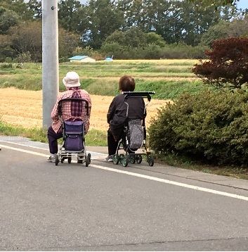 私の家の前には、陽気がいいとおばあさんが2人散歩にきます。2時間ほど車道にはみ出して座って雑談しています。真夏、真冬には来ません。