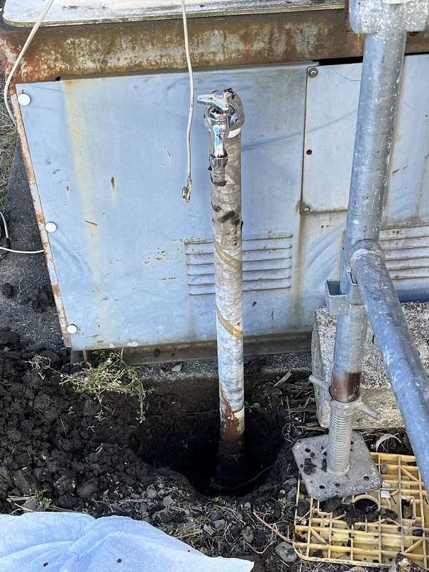 根元から、水が漏れているという事だったので、設備屋さんと掘ってみました。
