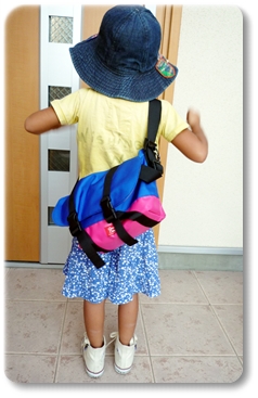 今更GROOVY COLORSメッセンジャーバックを娘に持たせてみました。