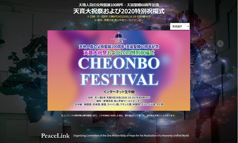 今回の「天寶大祝祭および2020特別祝福式」はPeacLinkホームぺージ( https://www.peacelink.live/ja/ )から視聴できます。