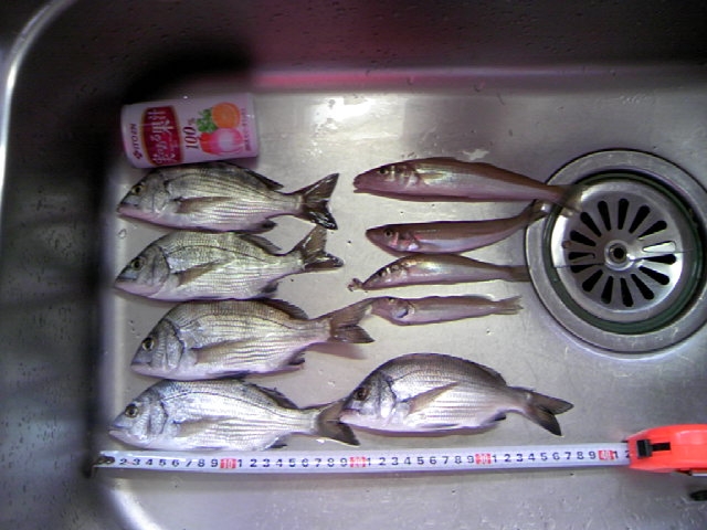 午前中はキス狙いで砂浜に行ったのですが、全くアタリが無く、防波堤での浮きサビキに変更。釣果はアジゴ、スズメダイ、カワハギ、ネンブツダイでした。カワハギは刺身にしたのですが、夏だからか、内蔵が臭くて肝も食べられなかった^^;スズメダイは背切り(セゴシ)、アジゴとネンブツダイは南蛮漬けにし、晩ご飯のおかずになりました。狙いは「一応」クロ・ヤアノイオ(バリ)だったので、餌取りの少ないちょい遠目に投げたのですが、最近アジゴが増えてきて、狙って釣る気になれば一日で100や200は軽く釣れそうです。処理がめんどいので釣りませんが^^;アジちゃん、もっと大きくなって刺身を食べさせてね!
