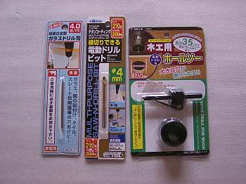 彩の国は今日も冬晴れになりそうで、朝日が部屋にいっぱいですけど寒い朝です。今の Pearun の部屋の様子です。(時間限定Liveです。)・朝のLive終了しました。数日前に100円ショップで変り種のドリルの刃をゲットして来ました、すぐ使う予定の物は一種類でしたが、これは何かの時使えそうと言う事で3種類まとめ買いしました。こんなドリルの刃が有るのをご存知でしたか...?1番左はガラスや陶器に穴を空ける刃です、時々水で冷やしながら使います。真中は何と穴あけは勿論横に切っていく事が出来る刃ですプラスチィクなど3mmまで対応しています。右は直径35mmの穴を空ける刃で今回の目的の品物です。