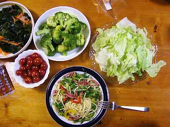今日は晴れで暖かくなりそうです、お日様の光が部屋の奥まで入り部屋は明るいです。今の Pearun の部屋の様子です。(時間限定Liveです。)・朝のLive終了しました。4月から値上げラッシュで節約に努めないとって事で、始めにターゲットにされるのが食料品ですよね。食料品節約でますます質素になって行く、我が家の食卓です、昨晩は野菜パスタでした。動物性タンパクと言うと中に入れたハムと、後でかけた粉チーズくらいで、なんだかなーって感じになって来ました。まあ今年からメタボ検診が義務付けられた様ですが、これだと絶対メタボにならないかもね。