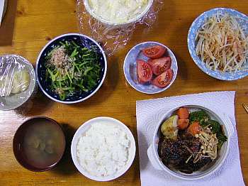 今日は晴れで暖かくなりそうです、お日様の光が部屋の奥まで入り部屋は明るいです。今の Pearun の部屋の様子です。(時間限定Liveです。)・朝のLive終了しました。恒例となってしまった昨日の晩御飯でメインはハムバーグをエノキ人参ポテトブロッコリーを入れて和風味を付けオーブンで焼いた物です。他はホウレン草のお浸し、トマトと1番安い野菜モヤシにピリ辛の中華味を付けた物と、お新香シジミの味噌汁などです。午後スーパーに行ったら、高い品物は山積み状態だったり、賞味期限が近い物の25%引き何て値札が目立ったのと、安い物はラップして有る量が異常に少ないのが気になりました、じわじわと家計圧迫ですね。