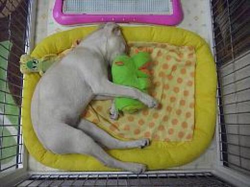 採の国の今日は1日晴れの予報です、部屋は明るい状態です。今の Pearun の部屋の様子です。(約7時~10時頃の時間限定Live)・節電の為本日のLiveは中止します。 ティアラの寝姿1 ティアラの寝姿2 ティアラの寝姿3 ティアラの寝姿4 ティアラの寝姿5 ティアラの寝姿6 ネタ切れの為ティアラの寝姿をUPしました、アヒルさんとカバさんの縫いぐるみと一緒に寝てます。丸まって寝ている時は多分若干気温が低い時だと思いますけど、夜は今もヒーターを入れて暖めています。今の所何が一番好きなのかはわかりませんが、遊び道具では布の紐が一番お気に入りの様で、遊びたい時は持って来る様になりました。今の所覚えたのは、待て、お手、ボールの名前、紐の名前、投げた物を持って来る、ハウスに入る事、程度です。